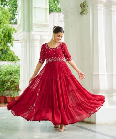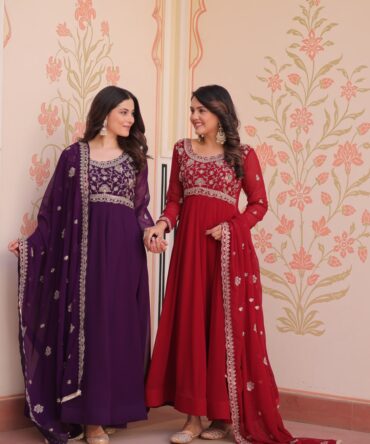 Pehnava Style Star Georgette With Embroiery Zari Sequins-Work Gown & Duppatta