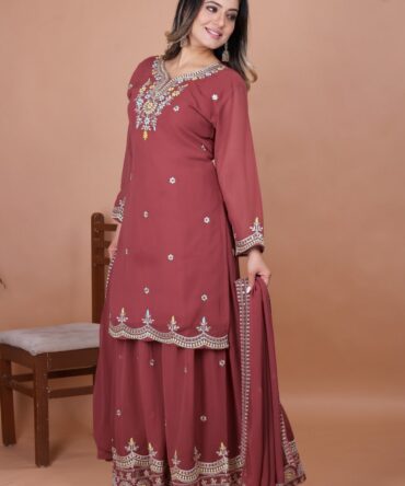 Pehnava Style Fox Georgette Embroidery Work Kurtie Sharara & Duppatta