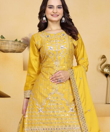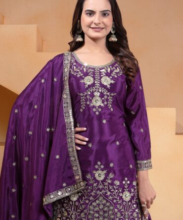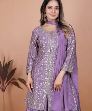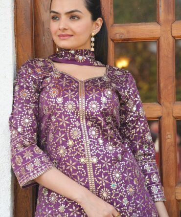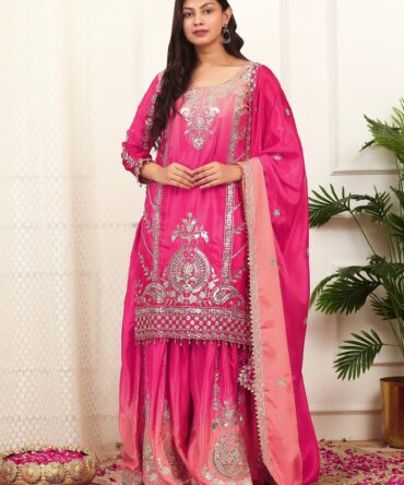 Pehnava Style Pure Shaded Chinon Silk Embroidery Kurtie Palazo & Duppatta
