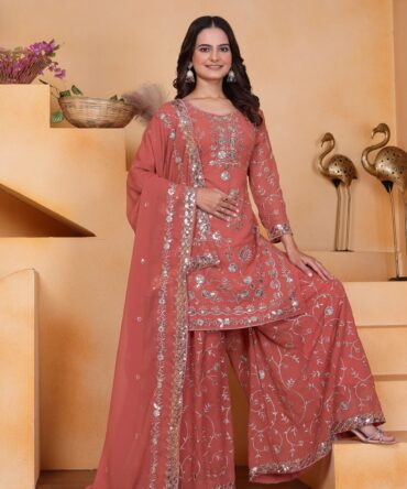 Pehnava Style Fox Georgette Embroidery Work Kurtie Palazzo & Duppatta