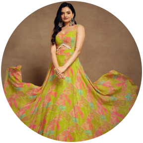 Pehnava Style Faux Blooming With Beads Embroidery Work Gown & Duppatta