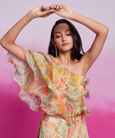 Pehnava Style Cream Organza Printed Co-Ord Set