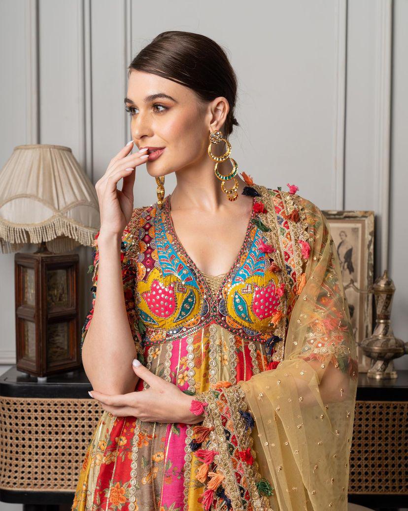 • ADITIRAOHYDARI  FROM HEERAMANDI INSPIRED DESIGNER PRINTED GOWN