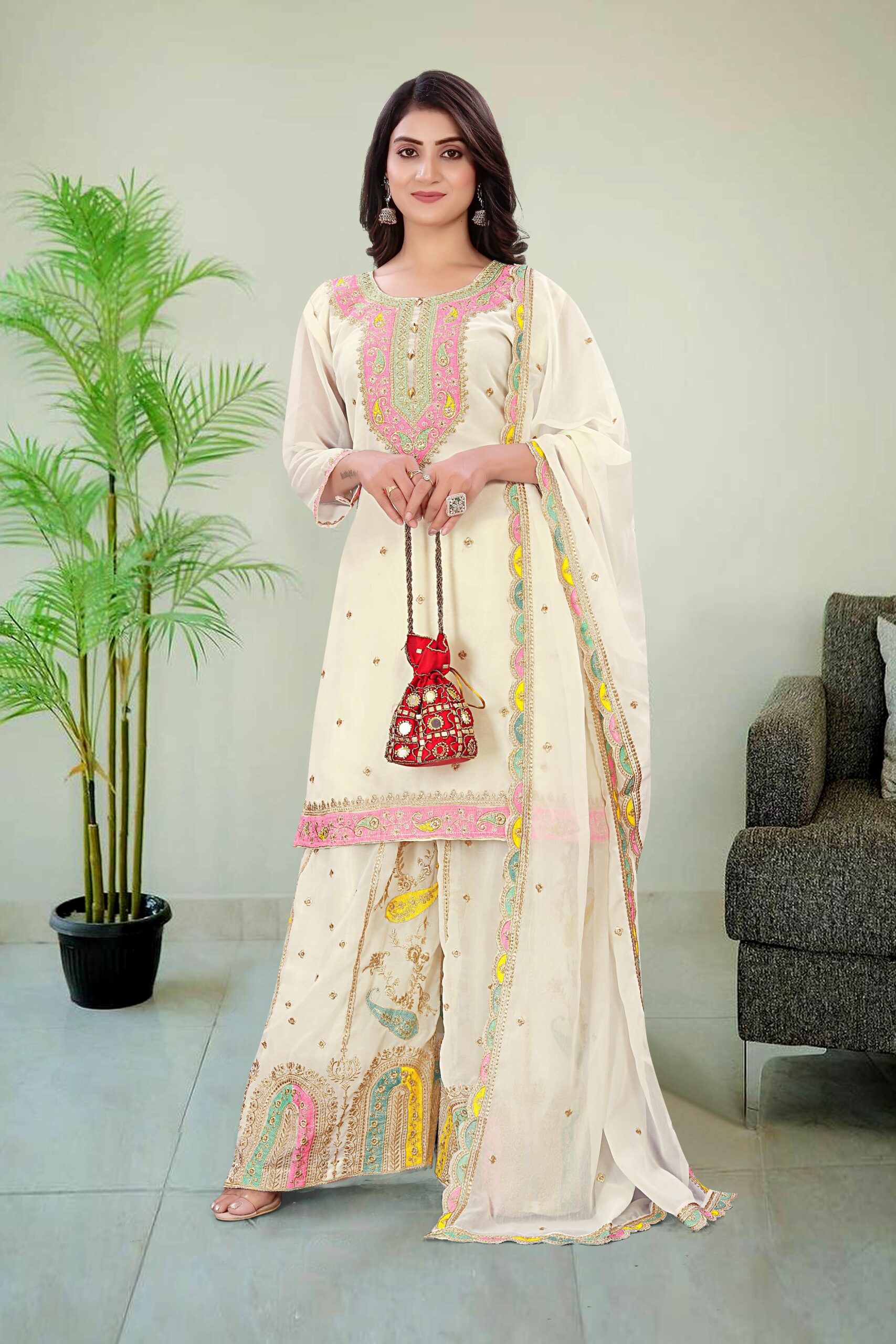 Home » Shop » GOOD QUALITY GEORGETTE TOP WITH BEAUTIFUL FULLY EMBROIDERED GEORGETTE PLAZZO