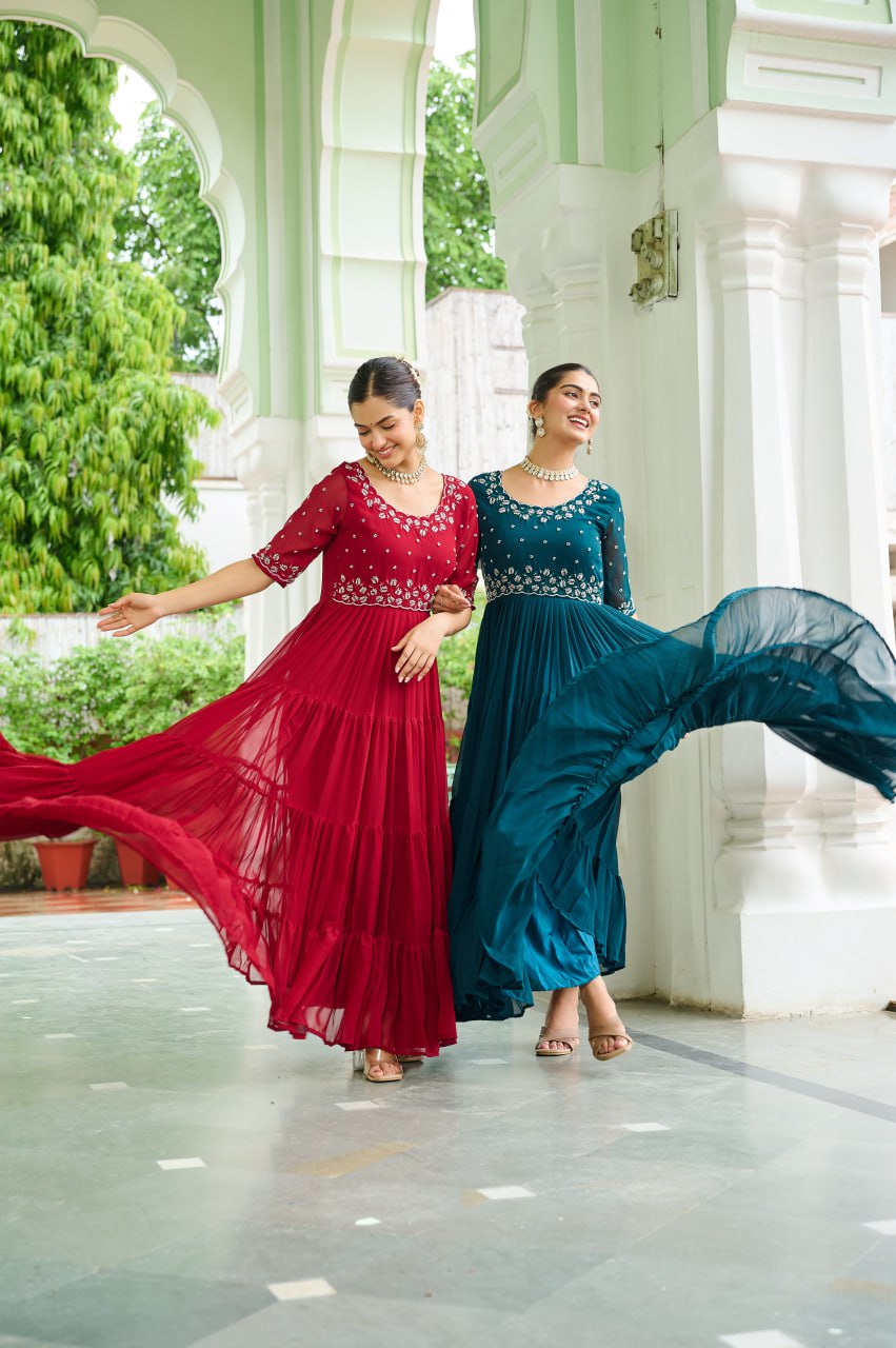 Be the first to review “Pehnava Style Faux Blooming With Beads Embroidery Work Gown” Cancel reply