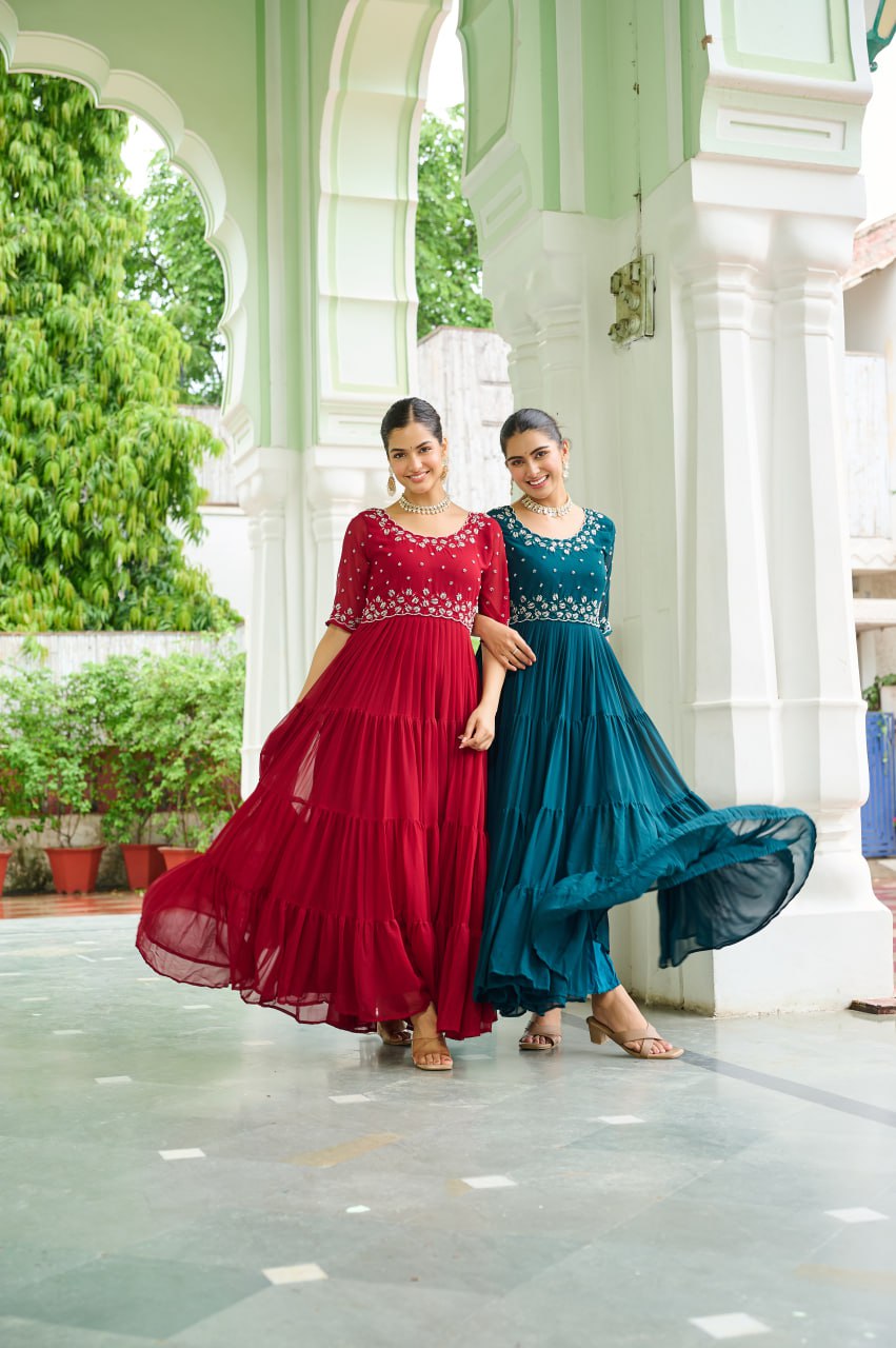 Home » Shop » Pehnava Style Faux Blooming With Beads Embroidery Work Gown