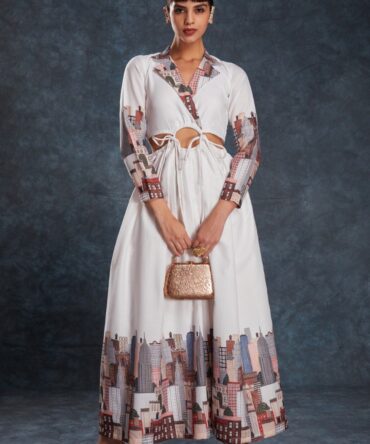 • Pehnava Style Printed Zari Embrodered Chiffon Gown