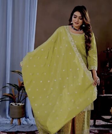 ENHANCE THE BEAUTY OF YOUR WARDROBE KURTI PLAZZO SET WITH BEAUTIFUL ORGANZA SILK DUPATTA