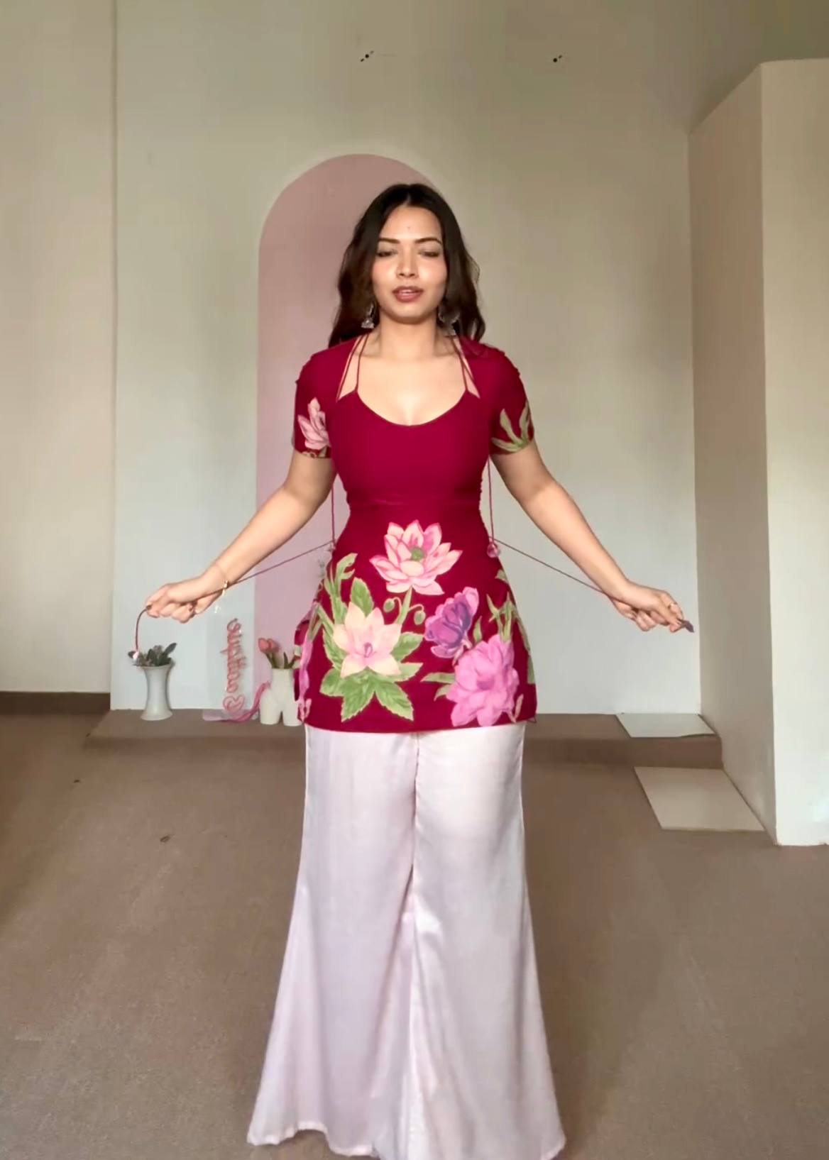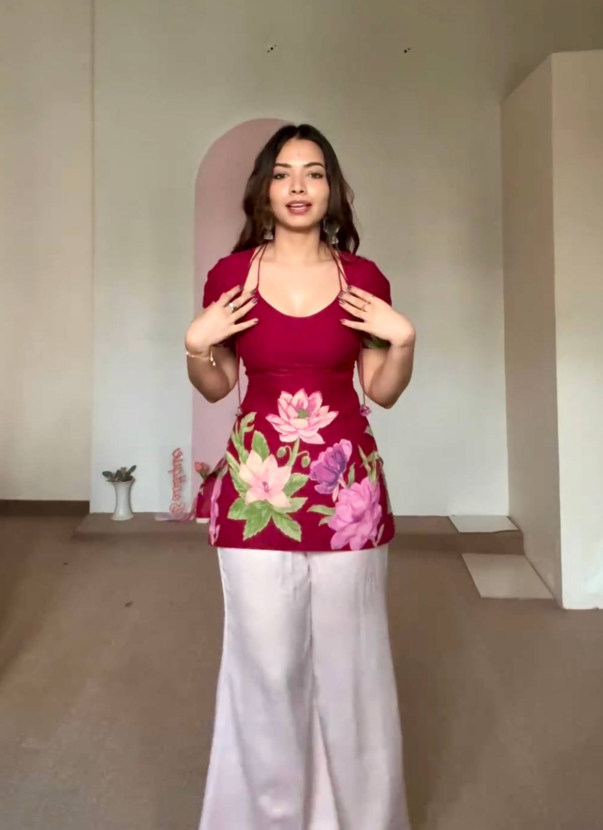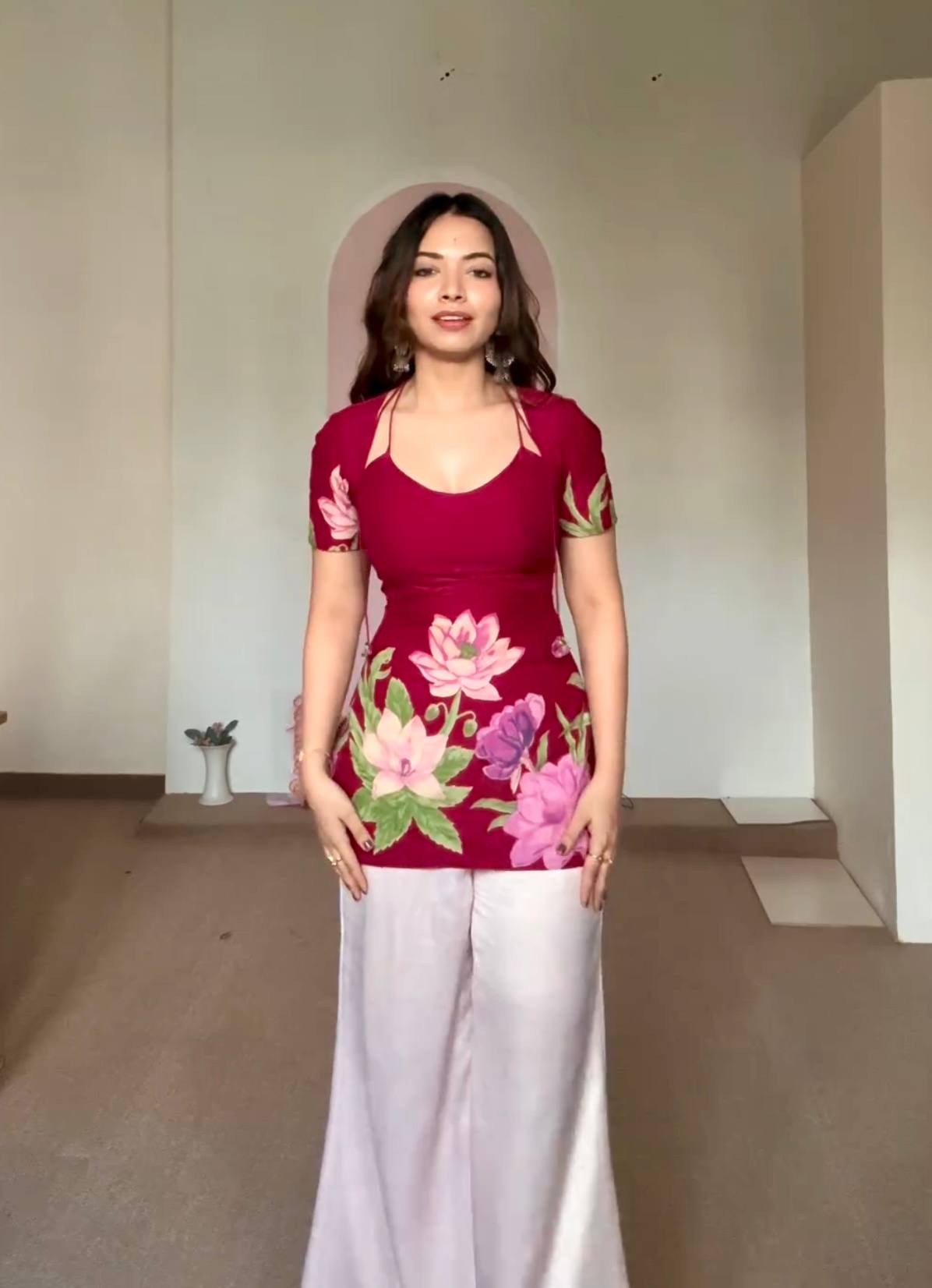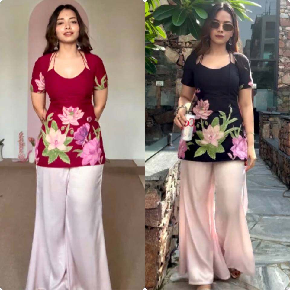 Home » Shop » Pehnava Style Pure Roman Silk With Digital Print Kurtie Palazzo