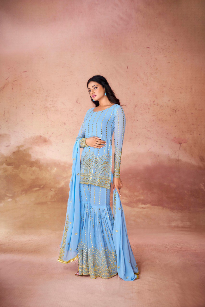 Home » Shop » Pehnava Style Sky Georgette sharara