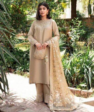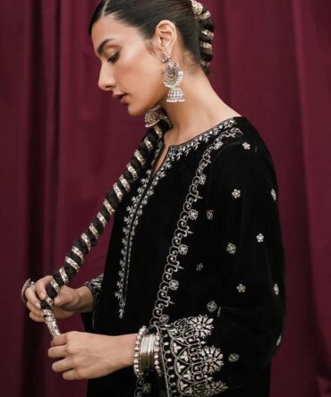 HEAVY VELVET KURTA & PANT (3-PIS SET) WITH BEAUTIFUL EMBROIDERY WORK
