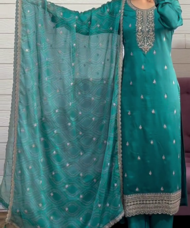 PAKISTANI DESIGNE SEQUENCE EMBROIDERED WORK TOP AND PANT WITH DUPATTA SET